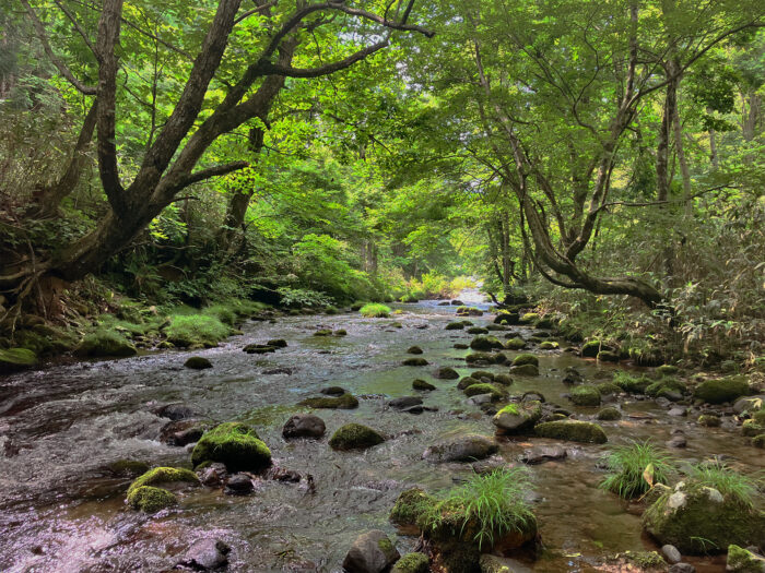 十和田湖から流れ出る美しい水と、深い森がつくり出す空気感は、まさに癒しの渓流そのもの。