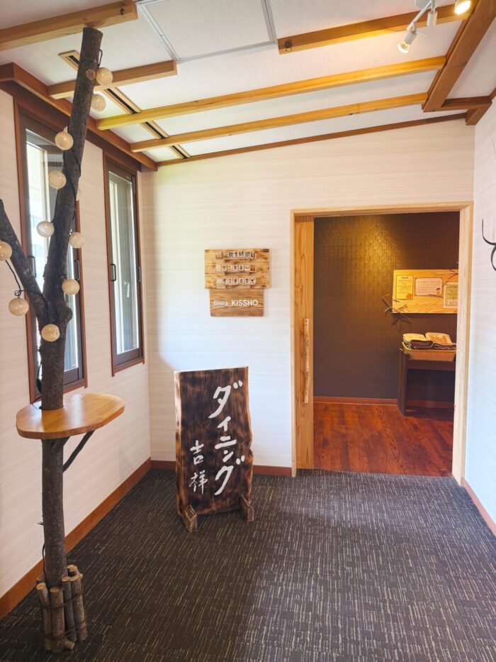 メインダイニング「ダイニング吉祥」は、木のぬくもりに包まれた和モダンな空間で、地の恵みを堪能できます。